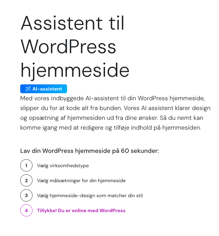 Du får support på dansk, hurtig hjælp via tickets, og i højere pakker også telefonsupport. Derudover hostes servere i danske datacentre, hvilket giver fordele med hastighed og databeskyttelse, især hvis størstedelen af dine besøgende er i Danmark.